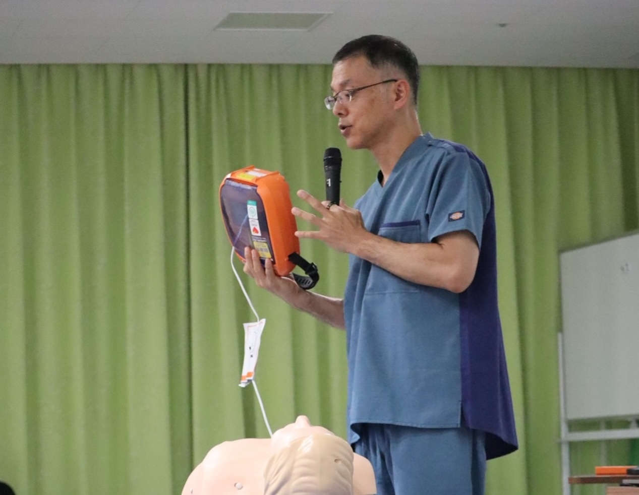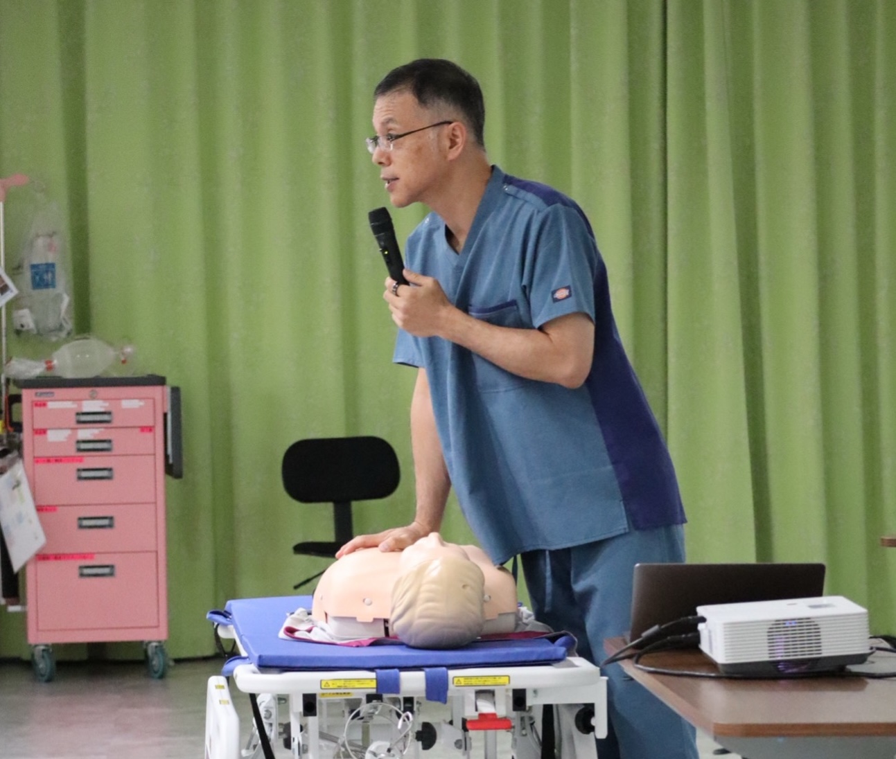 今後「指導者養成コース」を開催させていただく八千代リハビリテーション病院様で、まずは第一弾として 全職員を対象に1時間半のお時間をいただき、心肺蘇生ベーシックセミナーの講義部分の解説を行いました。